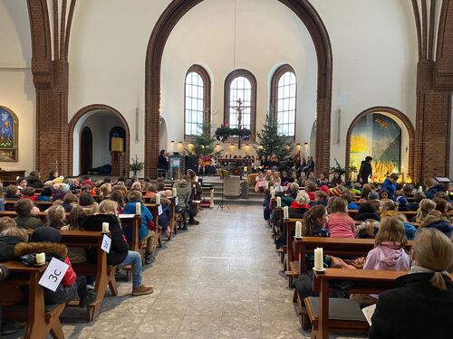 Am Donnerstag, den 22.12.2022 fand unser schulinterne Weihnachtsgottesdienst in der St. Heinrichs-Kirche statt. Gemeinsam wurden weihnachtliche Lieder gesungen und weitere durch den Chor vorgetragen. Ebenso konnten sich alle Gäste an einem kleinen Krippenspiel erfreuen. Vielen Dank an alle Schülerinnen und Schüler sowie Lehrkräfte, die diesen Gottesdienst gemeinsam mit den Kirchenverantwortlichen auf die Beine gestellt und so schön gestaltet haben!