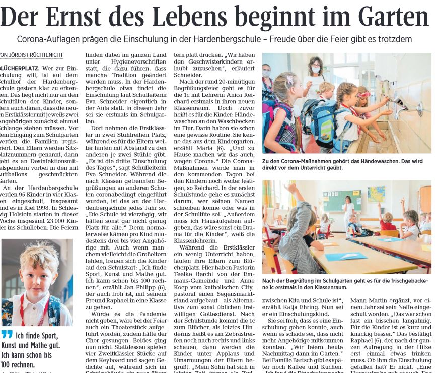 im Bereich Presse finden Sie zwei pdf-Dokumente der Kieler Nachrichten über die Einschulung der Erstklässler an der Hardenbergschule.