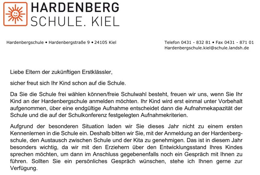Liebe Eltern der Hardenbergschule,