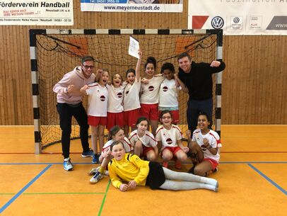 Den Futsal-Mädels der 3. und 4. Klassen ist der Einzug in die Finalrunde der Landesmeisterschaften gelungen! In drei spannenden Spielen haben wir uns gegen die Kontrahenten nach einem 0:0 zum Start mit jeweils 1:0 durchsetzen können. Das entscheidende Tor im dritten Spiel wurde 37 Sekunden vor Schluss erzielt und die Freude kannte keine Grenzen!
