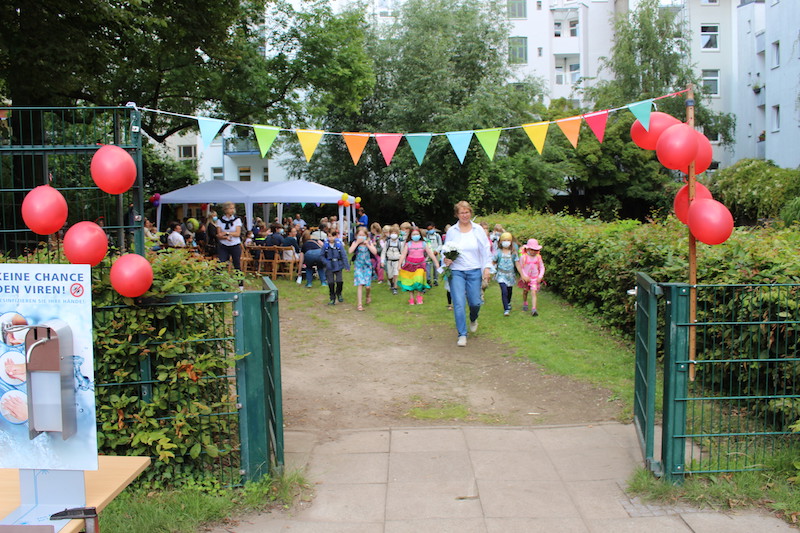 Unsere neuen 1. Klässler wurden bei strahlendem Sonnenschein in unserem feierlich geschmückten Schulgarten eingeschult und von Frau Schneider und allen anderen Lehrer*innen an der Hardenbergschule herzlich willkommen geheißen.