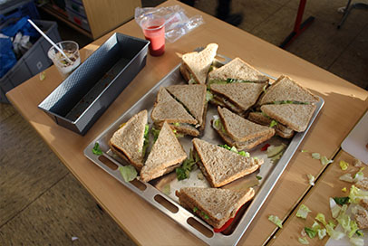 Am 23.01.2019 fand in der 2. großen Pause durch die Klasse 3b ein Verkauf von gesundem Frühstück statt. Dieses Frühstück entstand im Rahmen eines Projektes zum Thema "gesunde Ernährung". Hierbei stellten die Schülerinnen und Schüler Obstsalat, Smoothies, Sandwiches, Nudelsalat und Möhrenkuchen her. Jedes Produkt wurde zum Selbstkostenpreis von 50 Cent zum Verkauf angeboten.