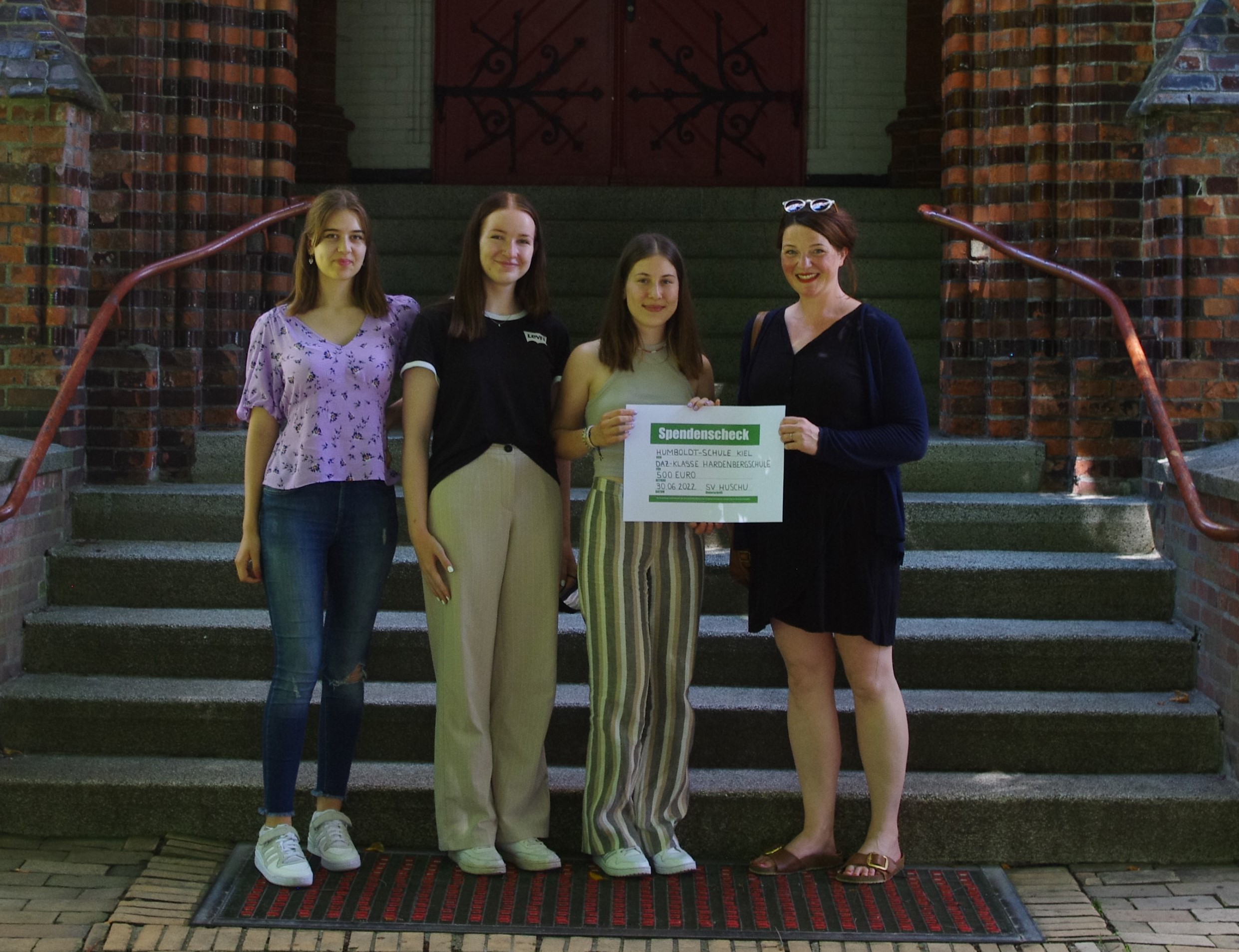 Ein herzliches Dankeschön durfte Antje Gerbener im Namen des Fördervereins der Hardenbergschule schon bei der symbolischen Übergabe an die hilfsbereiten Schülerinnen und die Schulleiterin der Humboldtschule aussprechen. Mit einer Flohmarktaktion unterstützen sie unsere DaZ-Klassen.