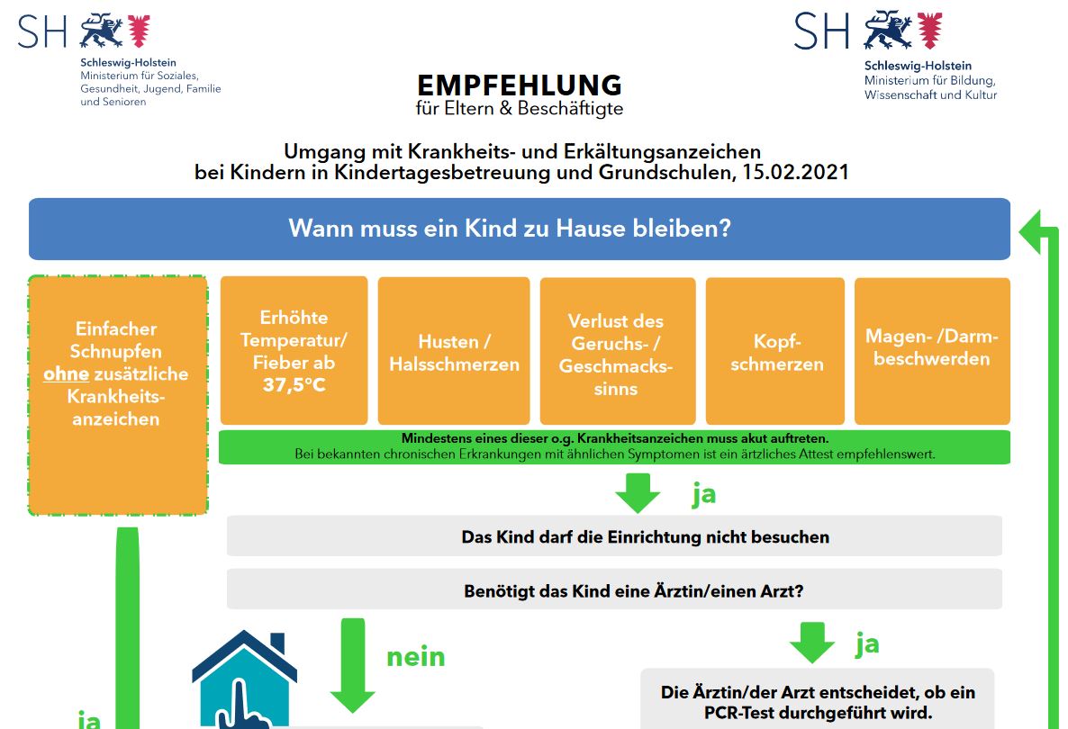 das Gesundheitsministerium hat eine aktualiserten Schnupfenplan zum Verhalten bei Auftreten von Erkältungssymptomen erstellt, welcher das Vorgehen in einem Schaubild darstellt. Sie finden die Handlungsempfehlung weiter unten in Form einer pdf-Datei zum Download.