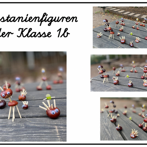 Die Klasse 1b hat in ihrer dritten Schulwoche mit Kastanien im Schulgarten gearbeitet.